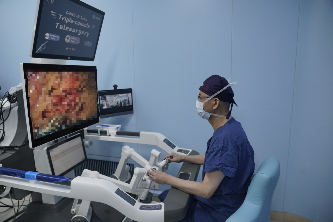 一周前(7月17日),一场改写医学疆界的手术在此完成:我院泌尿外科叶烈夫主任、吴进锋副主任团队,与身处法国斯特拉斯堡的北京大学第一医院李学松教授、以及位于北京的谌诚教授、杨昆霖教授家密切配合,通过国产“康多”手术机器人系统,跨越1.5万公里网络距离、串联三地控制台,为王先生(化名)实施了高难度的输尿管闭锁段切除吻合术,成功保住了濒临衰竭的左肾功能。在我院医护人员的精心照护下,王先生恢复良好,顺利出院。