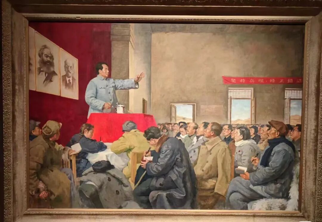 延安时期,为了清除王明“左”倾和右倾教条主义的影响,搞清历史上的是非问题和路线问题,在全党确立实事求是的思想路线,中共中央通过整风在全党范围内进行了一场普遍、深入的马克思主义教育运动,净化党魂培育了延安精神。1945年,党的七大在延安召开,大会把毛泽东思想确立为全党的指导思想并载入党章。以毛泽东同志为主要代表的中国共产党人,把马克思列宁主义的基本原理同中国革命的具体实践相结合,实现了马克思主义中国化的第一次历史性飞跃。