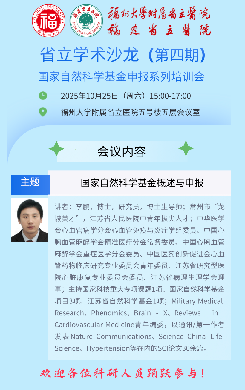 省立学术沙龙(第四期)|国家自然科学基金申报系列培训会