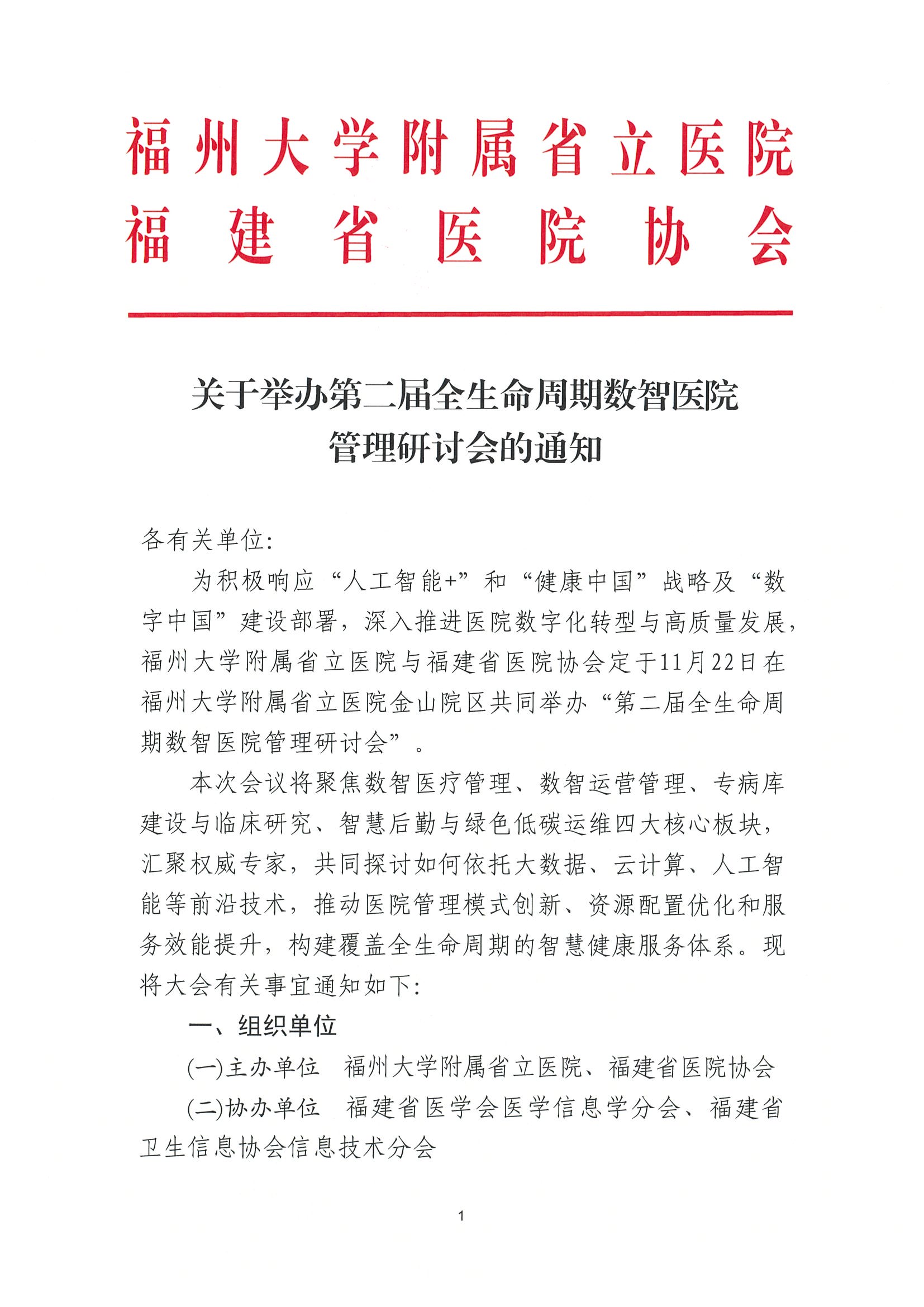 关于举办第二届全生命周期数智医院管理研讨会的通知