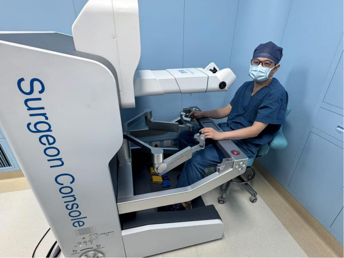 该手术采用国产蛇形臂机器人系统,通过脐部单一2.5cm切口完成全流程操作。