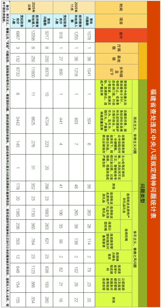 福建省2025年以来查处违反中央八项规定精神情况如下:
