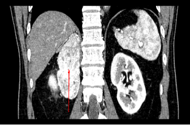 最近,陈先生体检发现占位不断变大,便前往当地医院看诊,才被确诊为右侧肾上腺嗜铬细胞瘤——此时肿瘤已长到10公分,就象一颗大土豆,被下腔静脉等重要血管包绕,成了一颗随时会引爆的“隐形炸弹”。