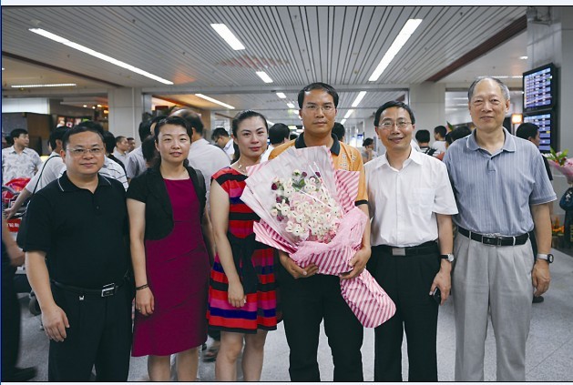 本报讯 7月23日,我院心内科主治医师陈威圆满完成援疆医疗任务凯旋归来。省卫生厅人事处副处长林永强,我院党委书记、副院长朱鹏立,心内科主任浦晓东到机场迎接。