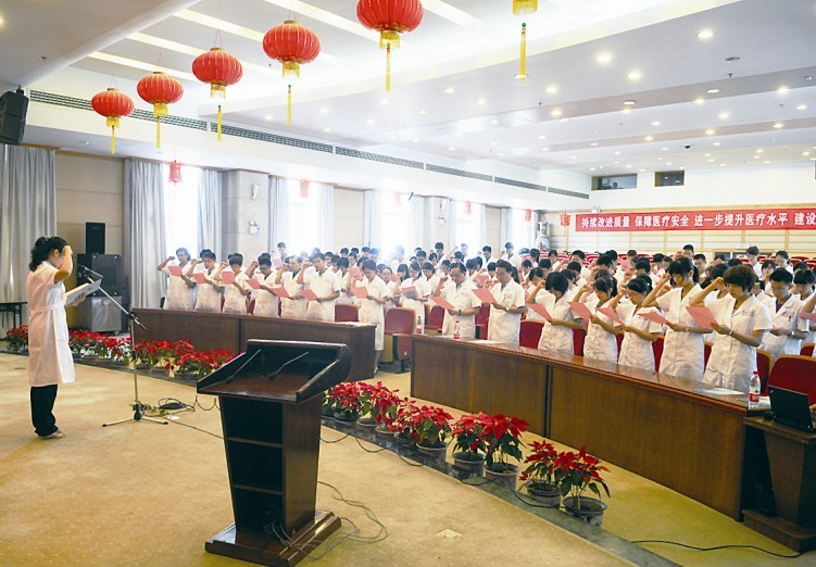 仪式旨在让新员工牢记使命,守护健康,促进和谐,今后将作为岗前培训的必备内容之一。(文/医务部 摄影/王玲)