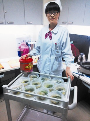 除夕晚上,我与值班医生陈四八共同合作,给患者送上了象征着平安和太平的“太平燕”。热腾腾的“太平燕”带给病人的不仅是节日里温馨的感动,更多的是对他们新一年的祝福。我们还精心准备了装载了很多祝福和祝愿的“吉祥话红包”让病人及家属随机抽取。