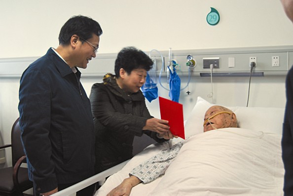 省委常委、组织部长姜信治一早来到我院,在去年9月新搬入省心血管病综合大楼的干部保健病房里看望慰问住院的老同志,他关切地询问老同志病情、生活及康复情况。他说,春节快要到了,代表省委、省政府向大家表示慰问,衷心祝愿老同志早日康复、过一个愉快的新春佳节。
