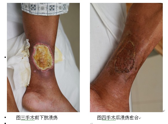 本报讯 今年3月,福建省立医院、省心血管病研究所多功能一站式手术室正式投入使用,也为我院血管外科开展介入杂交手术提供新的平台。近日,37区血管外科组医师在第二手术部的多功能一站式手术室成功为1例左下肢深静脉血栓形成后综合征女性患者地施行“左髂静脉球囊扩张术+支架置入术”。困扰患者多年的踝部溃疡也在术后一个月顺利愈合(如下图)。