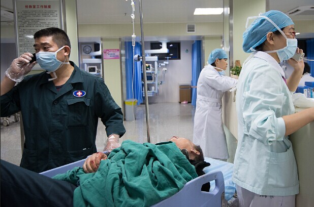 车祸伤员被紧急送入医院,为伤者争分夺秒,是急诊医护人员每天处于高度紧张状态下的写照。