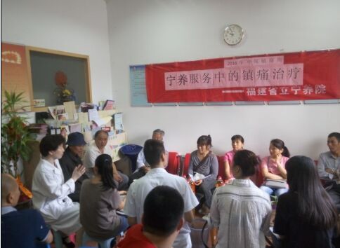 2016年10月17日“中国镇痛周”之际,由福建省立医院、省医学会麻醉学分会、老年医学分会联合主办的“世界镇痛日中国镇痛周”大型公益科普系列活动在榕举行。此次活动历时5天,我院麻醉科联合护理部、干部特诊科、外科、宁养院等多学科,强强合作,以多种形式向广大民众普及“科学就医、重视疼痛、消除疼痛”的理念,并以此为契机,推进镇痛事业在我省的发展、推动舒适化医疗在多学科合作快速康复领域的深入实施。