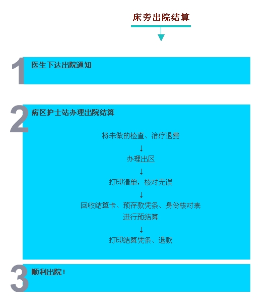 原先办理出院手续,需要病区→结算窗口→病区往返各一次,耗时30—40分钟以上,现在开始在住院病区,患者及家属可以直接办理结算了。