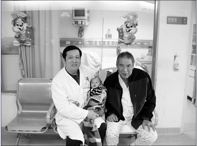 这是一张最近拍于我院心外科病房的照片,左边医生是我院副院长、心外科博士生导师、全国政协委员翁国星教授,怀中抱的是一名仅5公斤重的复杂先心患儿,边上坐的是一名90公斤的肥胖心脏病人。两位体重、年龄悬殊患者同一天接受高难度手术,康复出院前与翁国星副院长合影留念。