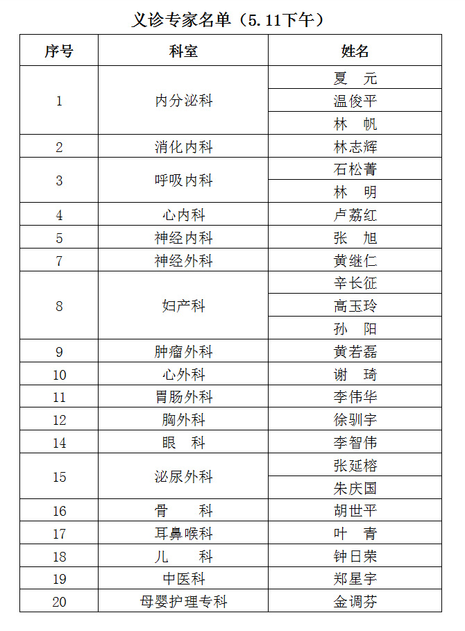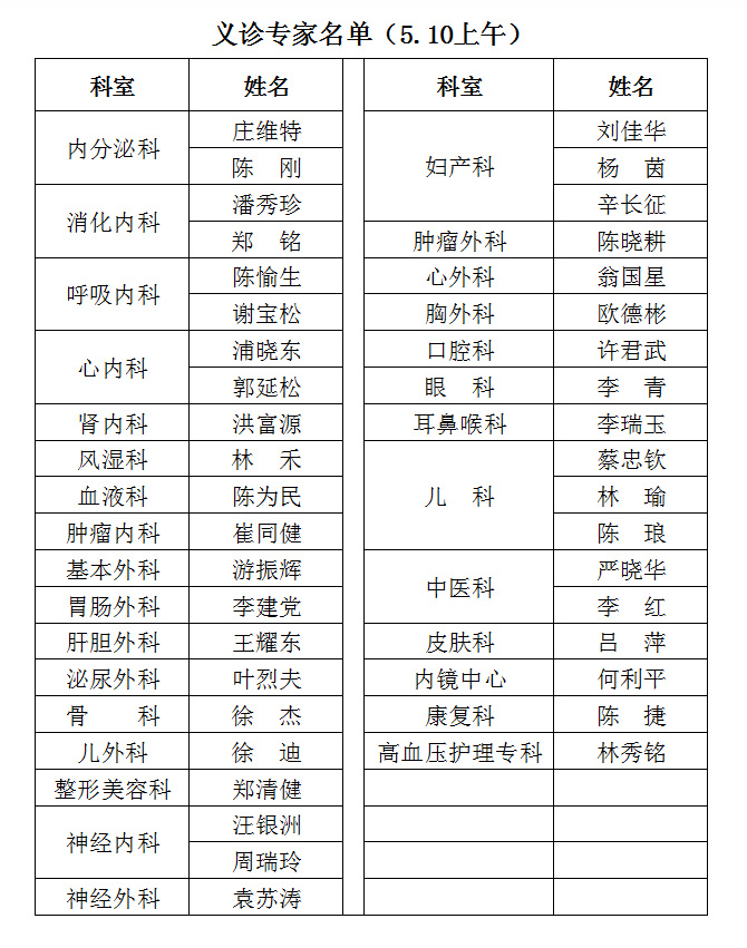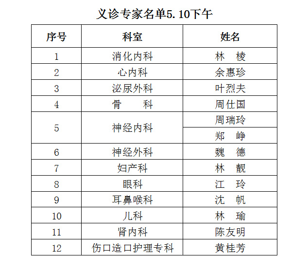 为庆祝福建省立医院南院(福建省立金山医院)隆重开业,回馈社会各界对省立医疗体系的厚爱,5月10日至12日在福建省立医院南院举办百名专家义诊活动。