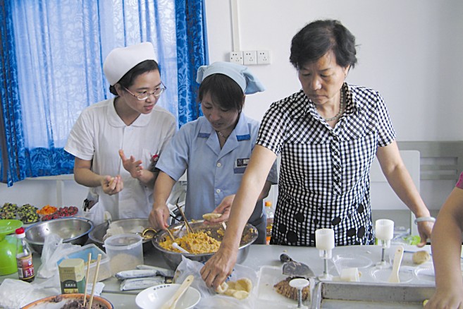 慰问病人的同时,示教室里各小组还在愉快地进行着,很快第二盘月饼也成功出炉,辛苦了一上午,大家迫不及待地品尝着自己的劳动成果,为了助兴,糖尿病俱乐部的学员还为大家表演自编的舞蹈,医护患如同一家,轻松愉快地共度佳节;“谁说糖尿病病人不能吃月饼?只要科学配料,合理饮食,同样可以像正常人一样享受中秋佳节的乐趣”。我们用温馨做皮、爱心做馅,触动病患的心弦、拉近医患的距离,共建和谐的医护患关系,谱写了一曲优质服务的新乐章———爱在中秋,感动服务。