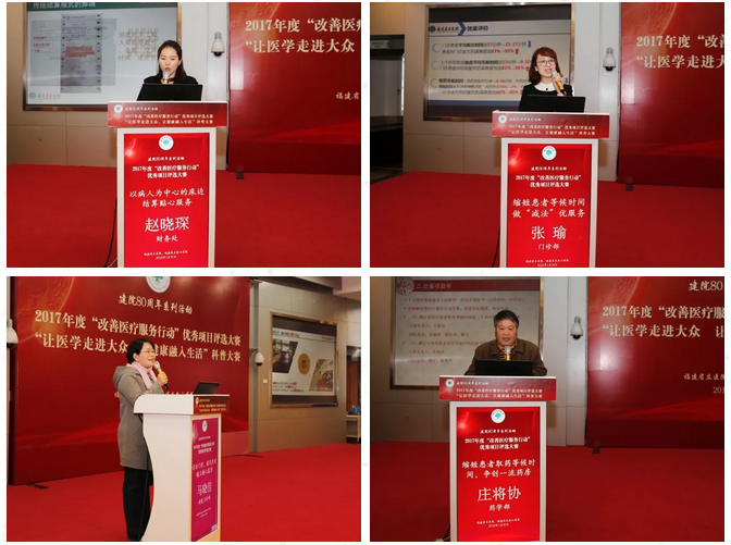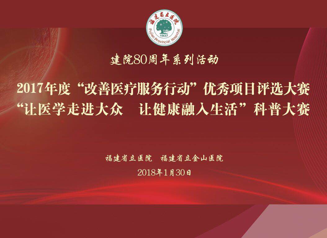 1月30日下午,福建省立医院、省立金山医院2017年度改善医疗服务行动优秀项目评选大赛总决赛顺利举行,部分院领导、医护代表、资深媒体记者、老年健康俱乐部成员代表等应邀担任评委。