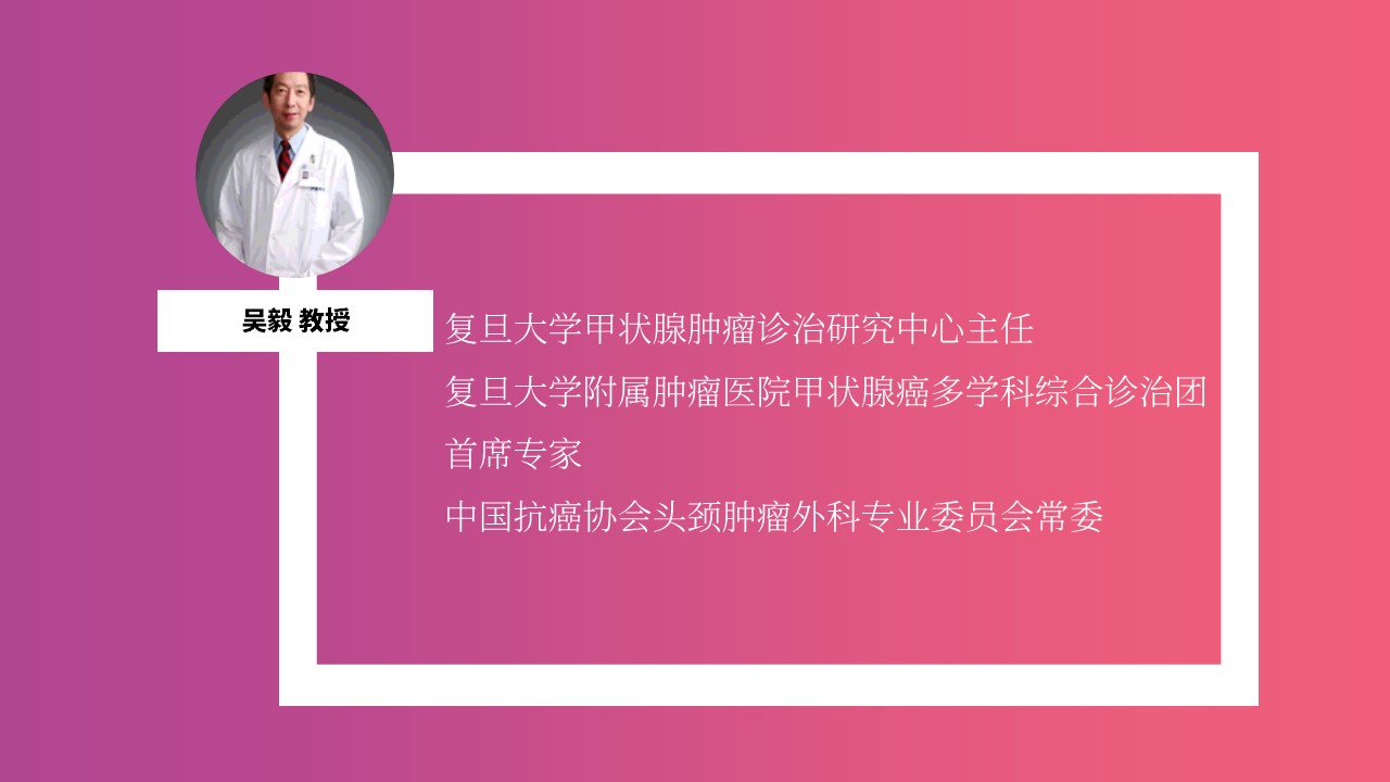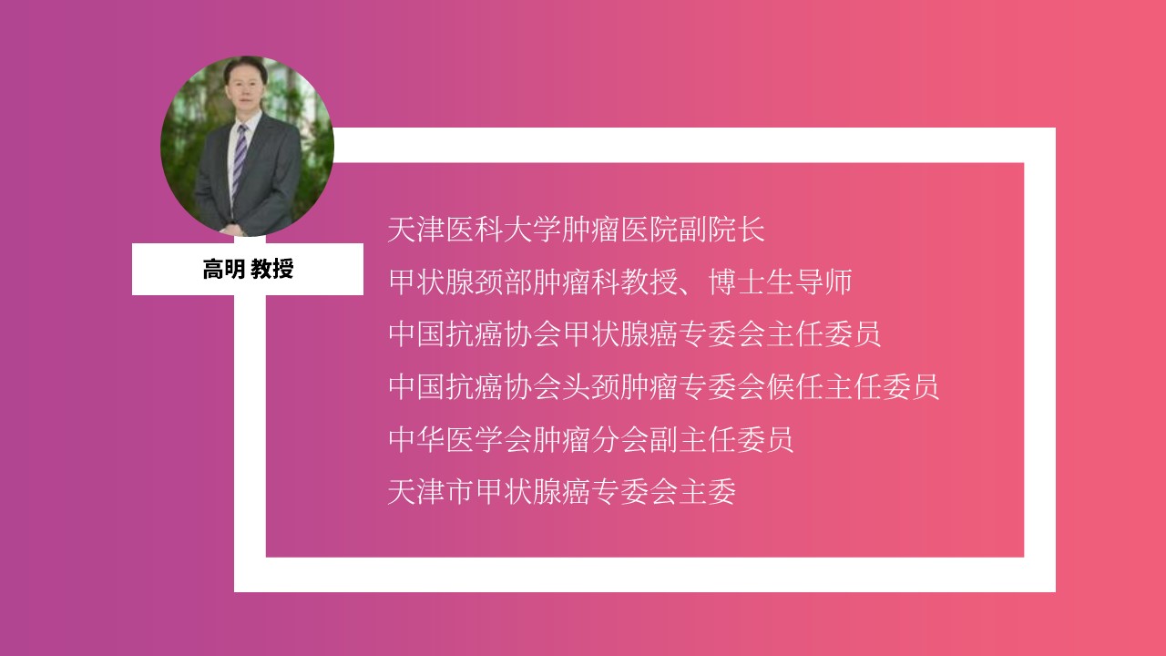 本次论坛特别邀请了美国科罗拉多大学首席内分泌学家、美国甲状腺癌指南工作小组主席Bryan Haugen教授,美国约翰霍普金斯医院甲状腺微创中心主任Jon Russell教授,同时邀请复旦大学附属肿瘤医院吴毅教授、天津医科大学肿瘤医院高明教授。