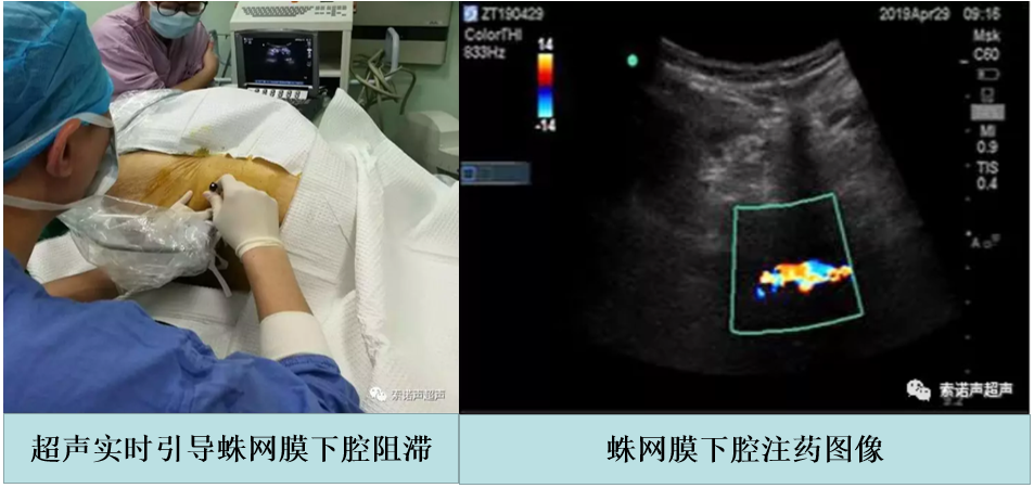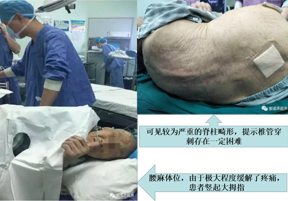 麻醉科郑艇博士在全面分析病情、甄选最优方案后,决定采取超声引导下椎管鞘内穿刺蛛网膜下腔阻滞的方法实施麻醉。麻醉前先利用髂筋膜间隙阻滞缓解患者疼痛,再以短轴平面内技术实施超声实时引导蛛网膜下腔阻滞,经密切配合、精准操作,麻醉取得了成功。患者安全地接受了右侧股骨骨折闭合复位髓内针内固定术,手术全程不仅保持了患者适度镇静,而且最大限度的保护了其脆弱的心肺功能。