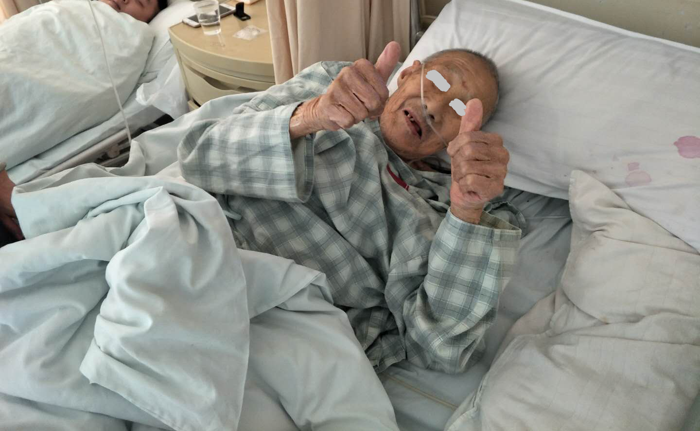 术后第三天,患者对整个围术期体验满意,竖起大拇指