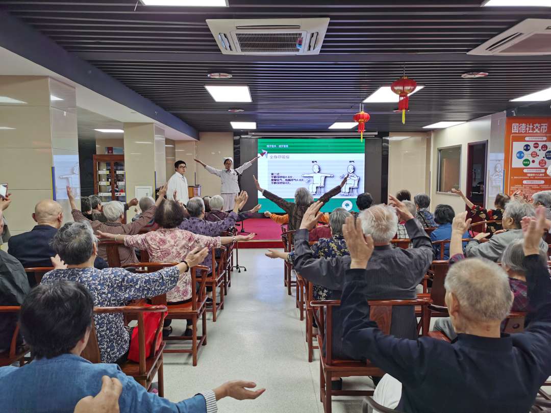 福建省立金山医院重症医学一科青年文明号集体来到国德康养中心,开展以“科技促民生,科普惠健康”为主题的义诊、科普活动。活动现场,医护人员就血压管理、皮肤护理、呼吸功能训练等方面,开展专题讲座,从饮食起居、精神状态和活动指导等方面进行健康宣教,帮助老人解决日常生活中的健康烦恼。
