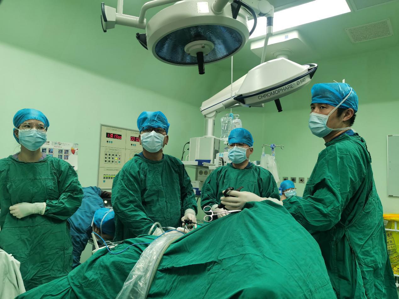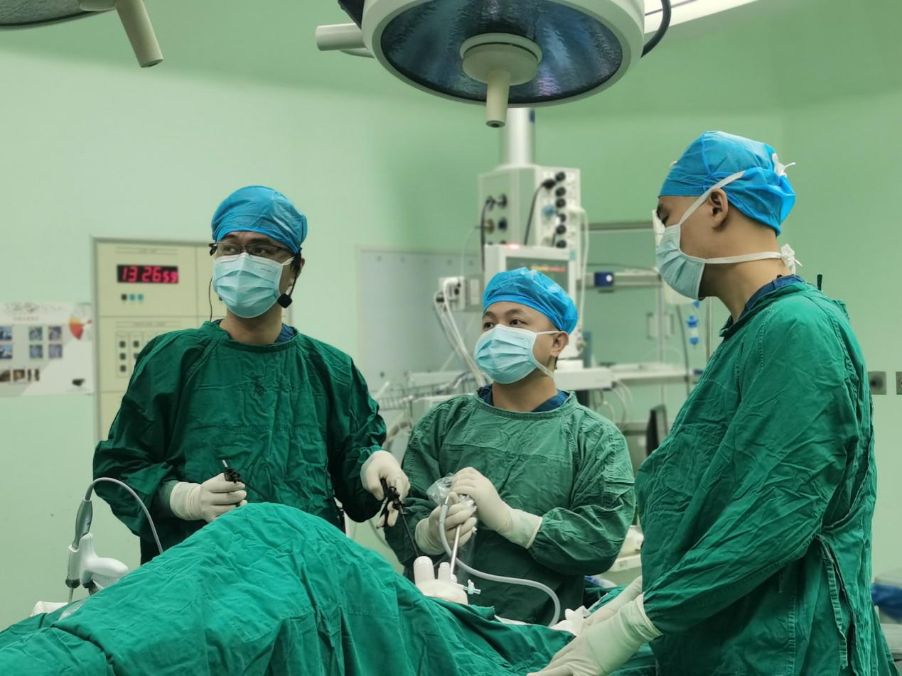 ▲黄良祥教授进行“腹腔镜下超低位直肠癌根治术”
