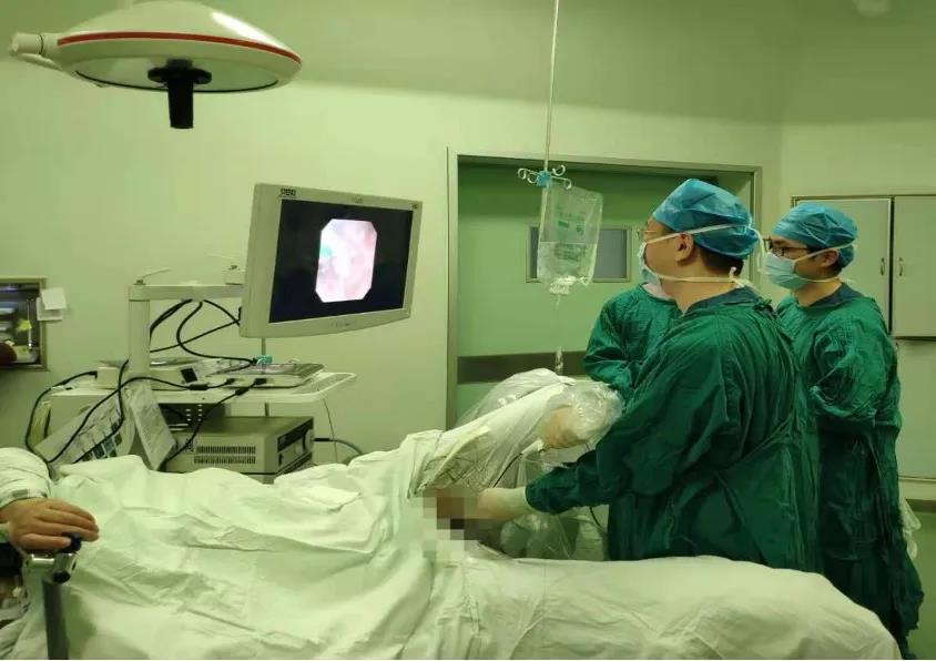 高祥勋主任医师团队正在进行经尿道输尿管软镜激光碎石取石术