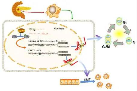 该研究成果首次在国际上揭示了CLK1-SRSF5轴会促进胰腺癌的发生发展,并明确了CLK1-SRSF5轴对下游可变剪接事件调控的机制及各自参与的经典通路,完善了可变剪接通路理论。该成果不仅为探明胰腺癌临床新标志物提供了新的理论基础;同时也为胰腺癌的治疗研究提供了新的线索。