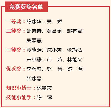 竞赛特邀福建医科大学附属第一医院洪发兰督导、福建省妇幼保健院念金霞护士长担任评委,我院护理部陈晓欢主任、陈美榕督导、李娜副护士长等参与现场指导。