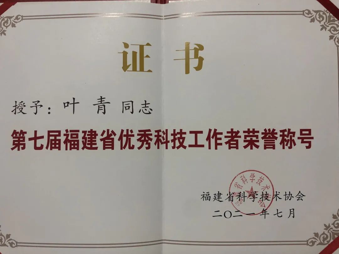 近日,福建省科协九届三次全会在福州召开,会议表彰了第七届“福建省优秀科技工作者”,我院叶青教授榜上有名。