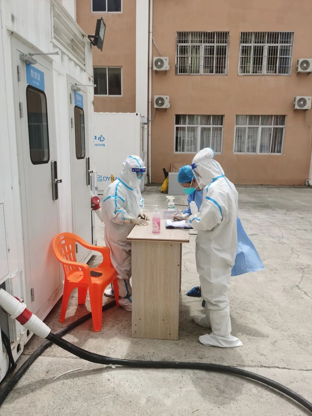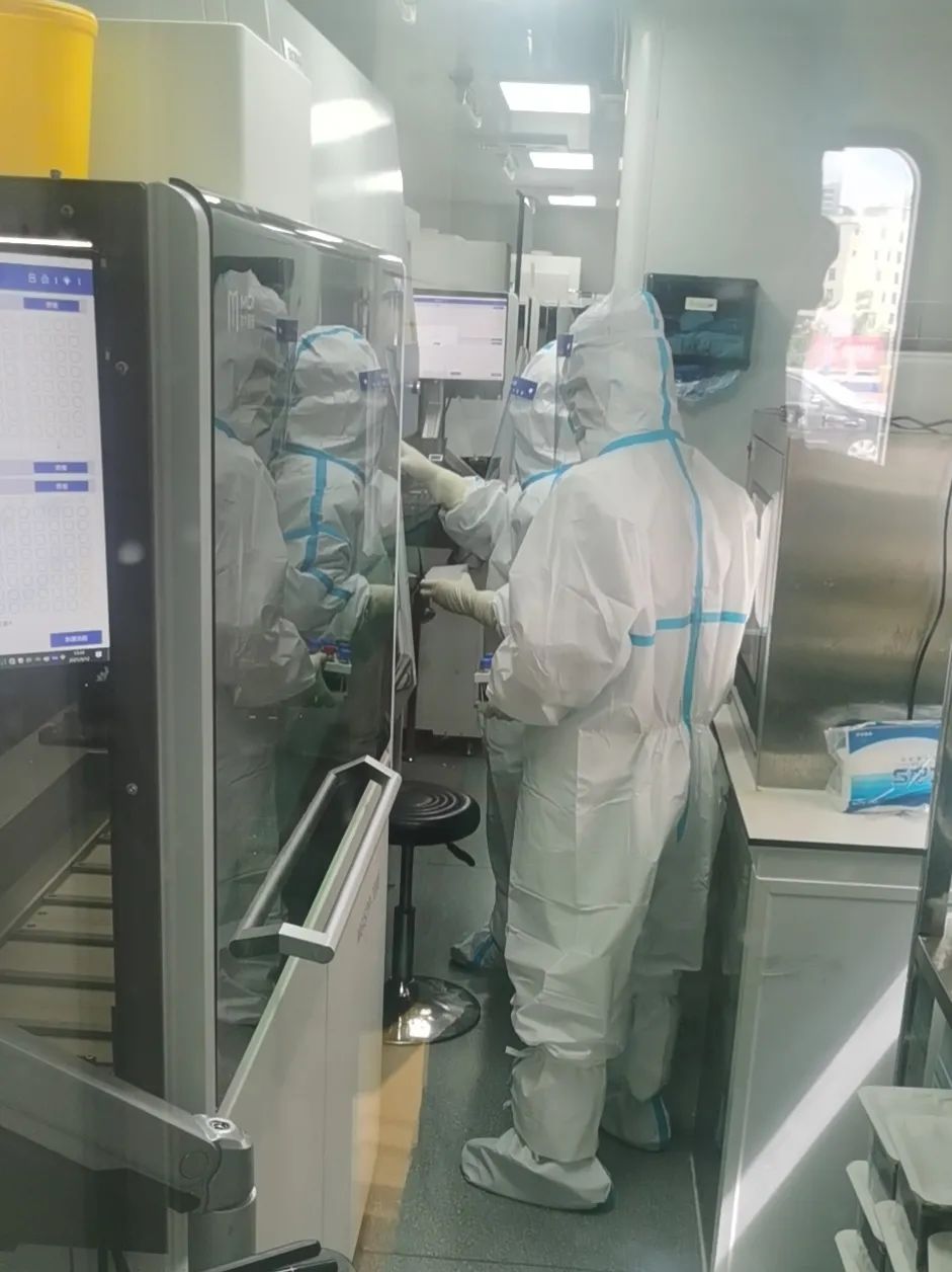 核酸检测医疗队由院领导陈锋、郑晓春带领,八名检测人员组成,携带了车载实验室和大型方舱式实验室等核酸检测设备。抵达枫亭镇后,迅速投入设备安装检测、人员排班等工作,目前,全体队员以饱满的精神,全力投入工作。