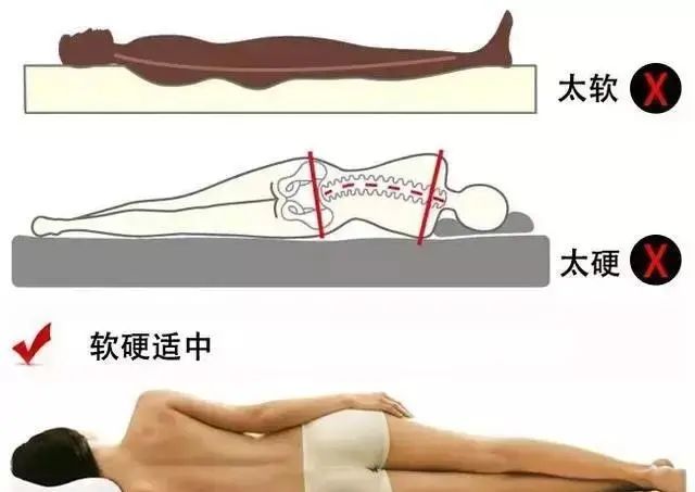 ⑤选择合适的床垫非常重要。建议患者采用中等强度的床垫,比如较硬的弹簧床垫或者独立袋装弹簧床垫,对承托腰部有较好的作用,可维持腰部正常生理曲线。