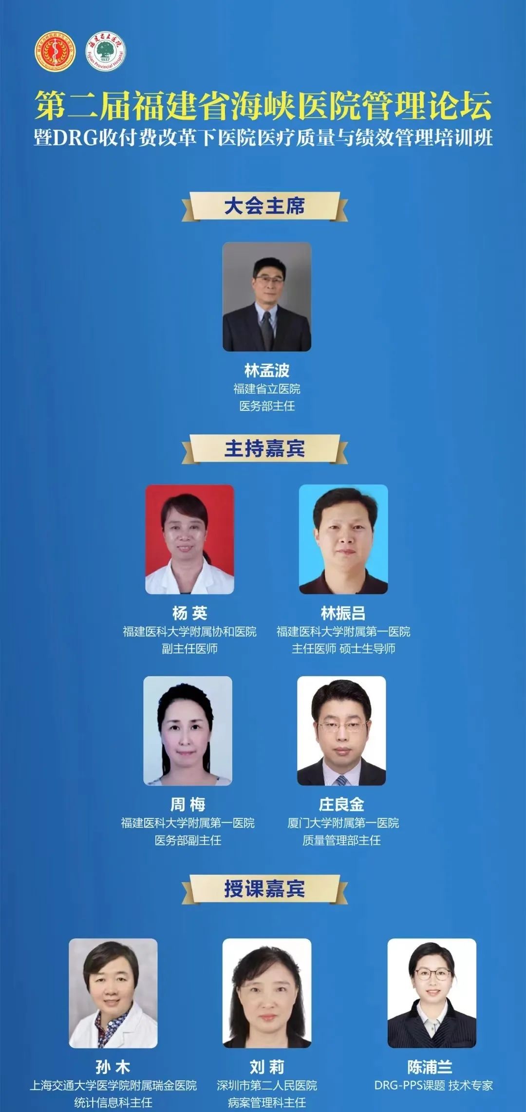 近日,由福建省立医院、福建省病案质控中心、福建省海峡医药卫生交流协会医院管理专委会举办的第二届福建省海峡医院管理论坛暨DRG收付费改革下医院医疗质量与绩效管理培训班在福州举行。我院党委书记、院长朱鹏立教授,省卫健委医政管理处处长洪涛,海峡两岸医药卫生交流协会副秘书长江坚出席开幕式并致辞。福建省病案质控中心主任、福建省海医会医院管理专委会主任委员、我院医务部主任林孟波教授主持会议。