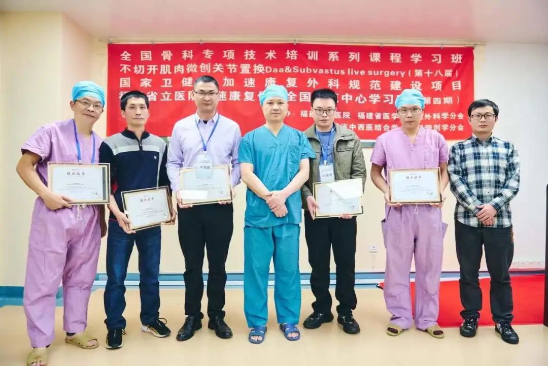 福建省立医院第十八期微创关节置换高级课程同期开班。福建省急救中心副主任郑晓春教授致辞。该课程通过多学科合作的理论授课与现场手术演示教学相结合的方式,将我院先进的微创关节置换技术毫无保留的传授给各地来访学员,对学员的提问进行细致的解答,增强了学员开展微创关节置换手术的信心。