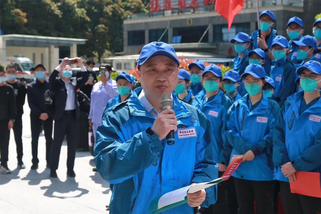 出征仪式上,全体人员齐声高唱中华人民共和国国歌,领队徐杰代表队员们发言,他表示全体队员将坚决贯彻党中央关于动态清零的总方针,坚决执行省委省政府部署和要求,严格落实各项院感防控措施。随后,带领大家诵读伟大的抗疫精神:“生命至上、举国同心、舍生忘死、尊重科学、命运与共”。