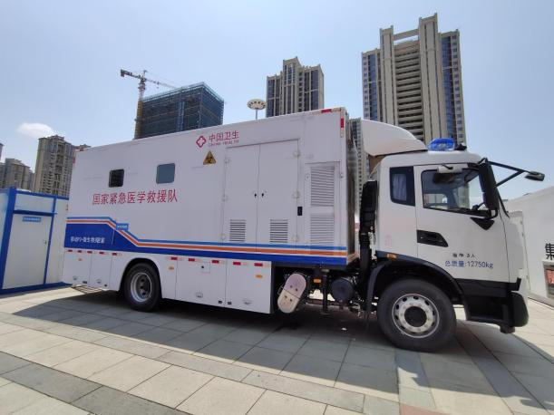 ▲国家紧急医学救援(福建)队P2移动实验车、供电车
