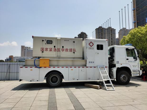 国家紧急医学救援(福建)队车载P2微生物实验室在重大突发公共卫生事件、涉及生物因子的现场侦检时可快速到达。救援队供电车可以为方舱实验室提供可靠的电力保障。