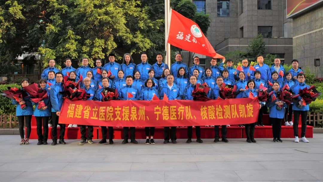 “大家辛苦了,欢迎回家!”今天正值立夏,45名福建省立医院、省立金山医院支援泉州、宁德抗疫医疗队、核酸检测队队员,结束集中休整,历经54天,平安归来。院领导、科室代表及队员家属在医院美丽的喷泉广场,共同迎接他们。