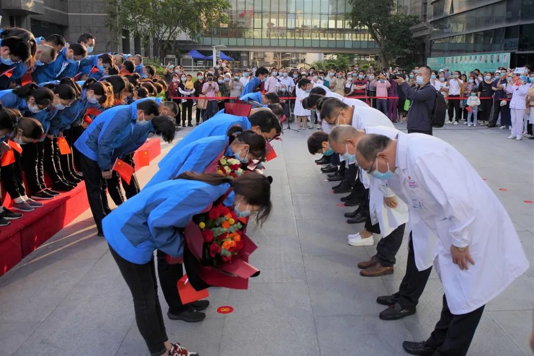 欢迎仪式简短而隆重,伴随着他们归程的是欢笑、是鲜花、是掌声,是激励、是期盼,更是前进的力量。今天医者平安归来,他们将继续满怀饱满的热情回归平凡岗位,继续为守护八闽百姓健康履行责任与担当。