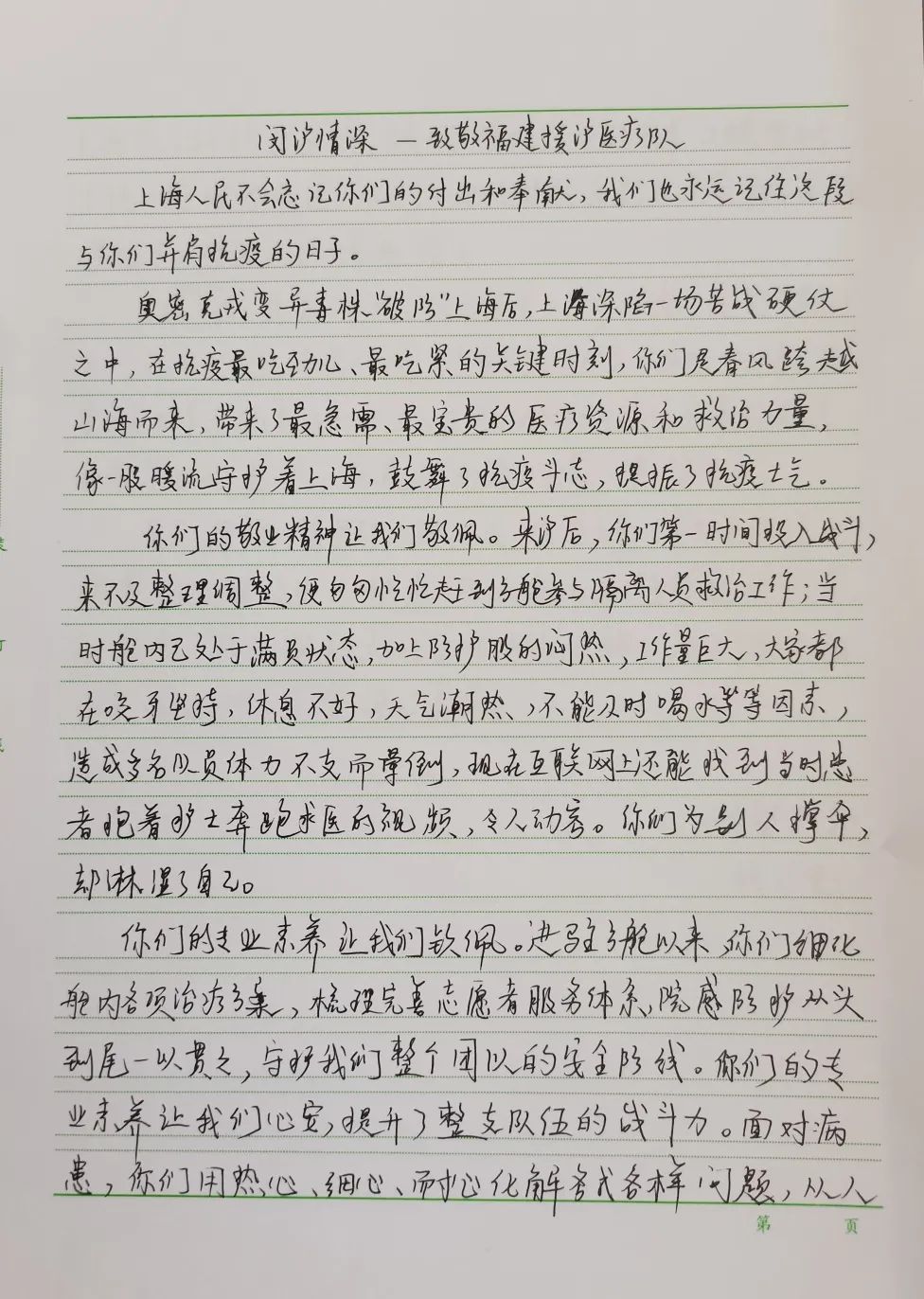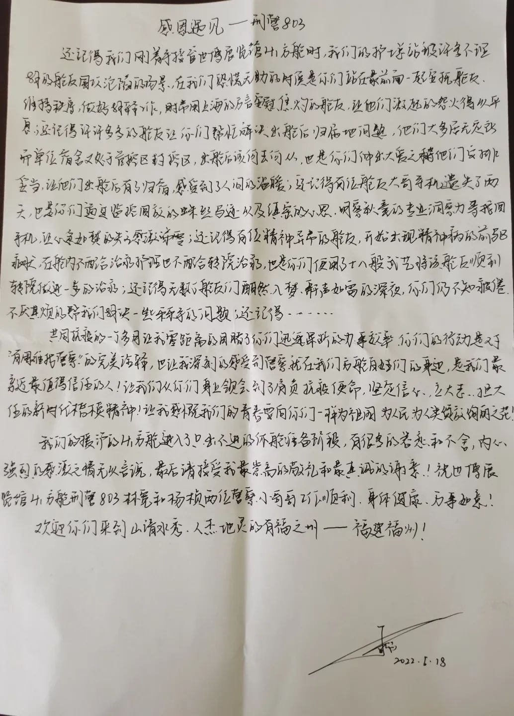 日前,在上海世博方舱医院休舱之际,福建省立医院援沪医疗队员与“刑警803”增援民警之间互留亲笔书信,让我们一同感受警医携手碰撞出令人动容的战友情谊。