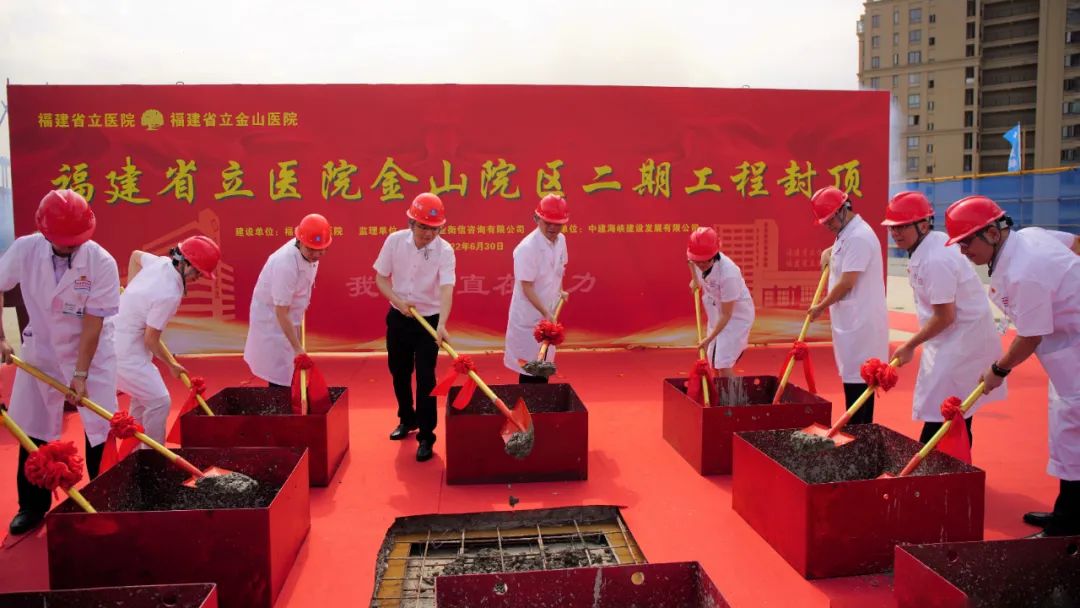 封顶仪式在福建省立金山医院举行,福建省立医院党委书记、院长朱鹏立等在家院领导、老专家,临床医技、行政后勤科室主任、护士长,医护人员、施工单位、监理单位代表参加仪式,共同见证这一历史时刻。仪式由福建省立金山医院院长郑铭主持。