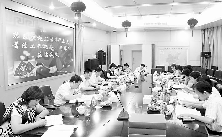 9月16日,卫生部“五五”普法检查验收组一行4人在卫生部政法司副巡视员何昌龄和省卫生厅法监处处长、卫生监督所所长赖以刚的陪同下来院检查我院普法工作,院领导朱鹏立、陈锋以及院办、党办、人事科、医务部、护理部、总务部等科室负责人陪同检查。陈锋副院长代表医院向专家组汇报“五五”普法工作的情况。